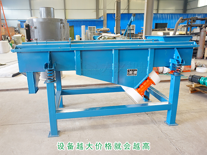 簡(jiǎn)單的一個(gè)道理,設(shè)備越大價(jià)格就會(huì)越高,就直線篩來說設(shè)備的直徑?jīng)Q定篩分精度,篩面寬度決定產(chǎn)量,所以在選擇時(shí)請(qǐng)根據(jù)自身生產(chǎn)要求和產(chǎn)量進(jìn)行合理選擇。
