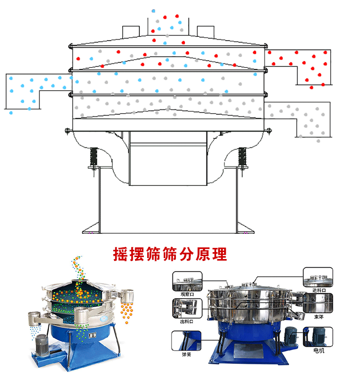 搖擺篩是輕微的橢圓搖擺運(yùn)動(dòng),不存在高速振動(dòng),對(duì)物料影響很小,不會(huì)破壞物料形狀,大大提高了物料的成品率。