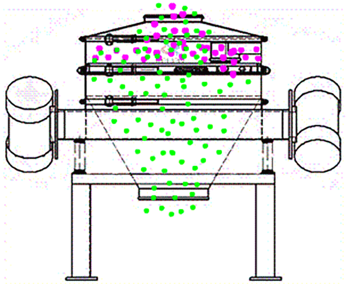 同樣是電機(jī)提供振動源,物料從進(jìn)料口進(jìn)入,在振動作用下,小顆粒穿過篩板到達(dá)出料口;篩機(jī)蓋使整個振動篩稱為一個密封環(huán)境,物料就不會受到污染或亂飛;彈簧則是在振動狀態(tài)下起到減震作用,如果沒有彈簧,振動篩是無法工作的。
