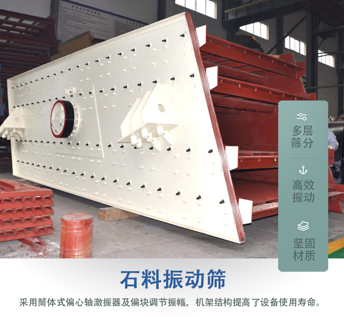 大漢機(jī)械生產(chǎn)的石料振動篩設(shè)備改良傳統(tǒng)振動篩結(jié)構(gòu)采用筒體式偏心軸激振器及偏塊調(diào)節(jié)振幅,鉚釘連接裝配式機(jī)架結(jié)構(gòu)提高了設(shè)備使用壽命及彈簧減振裝置減小了對基礎(chǔ)的沖擊力。