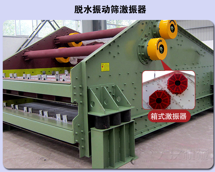 激振器采用整體的箱式激振器.激振器安裝在篩箱上部的大梁上,箱體內裝有主動軸和從動軸,軸上各有一對重量相同的偏心塊,通過齒輪兩根軸做同步反向回轉,使偏心塊回轉,產生離心力形成激振力。偏心塊成對的布置在激振器箱體外面,使箱內結構緊湊,齒輪對安裝在箱體內,潤滑可靠,傳動平穩(wěn)。