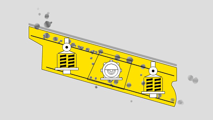 高效振動(dòng)篩是利用振動(dòng)電機(jī)或普通電機(jī)激振器做為振動(dòng)源,使篩體沿激振力方向作周期性往復(fù)振動(dòng),物料在篩面上沿直線(xiàn)方向作拋物線(xiàn)運(yùn)動(dòng),從而達(dá)到篩分目的。
