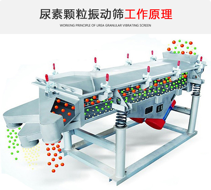 尿素顆粒振動(dòng)篩有:DZSF-515、DZSF-520、DZSF-1020、DZSF-1025、DZSF-1030、DZSF-1035、DZSF-1540等長、寬、高不同的機(jī)型。